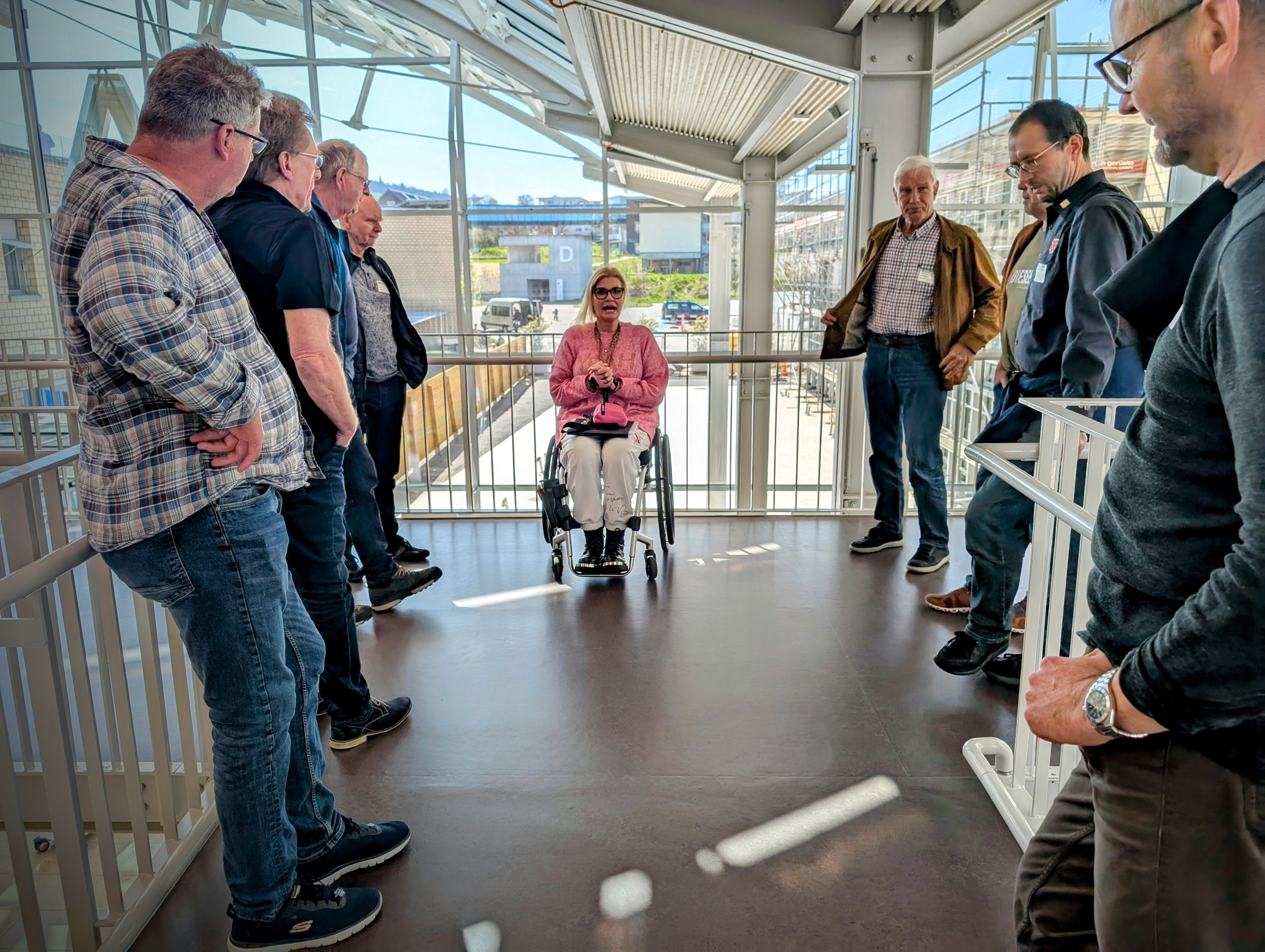 So fühlt es sich im Rollstuhl an Nach einem äusserst intensiven und informativen Morgen werden die Baukader-Leute nach dem Mittagessen von zwei Paraplegikerinnen durch das Zentrum geführt. Sie erfahren, was beim Eintritt passiert, mit welchen Herausforderungen, Querschnittsgelähmte konfrontiert werden, was sie wie neu lernen.