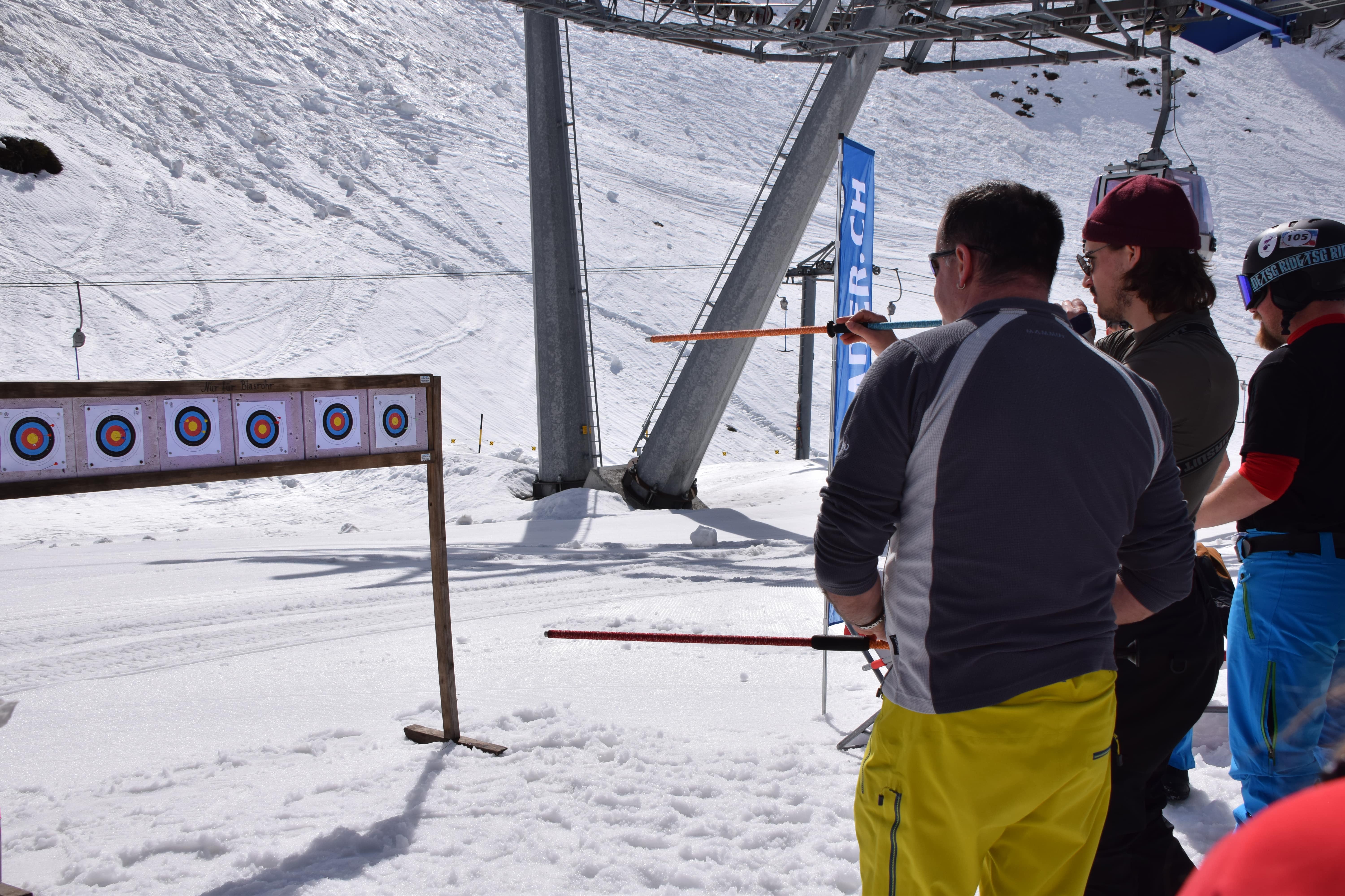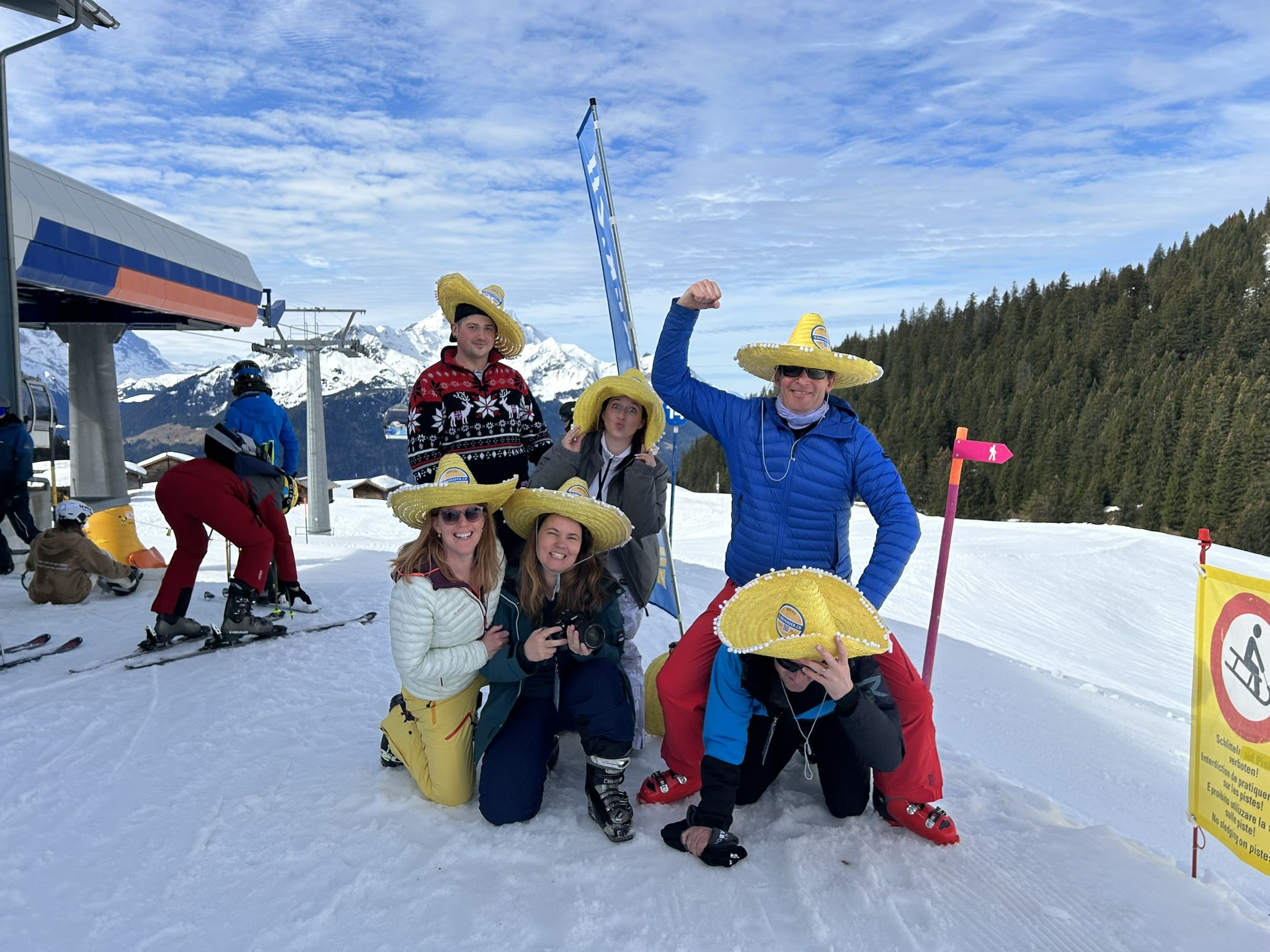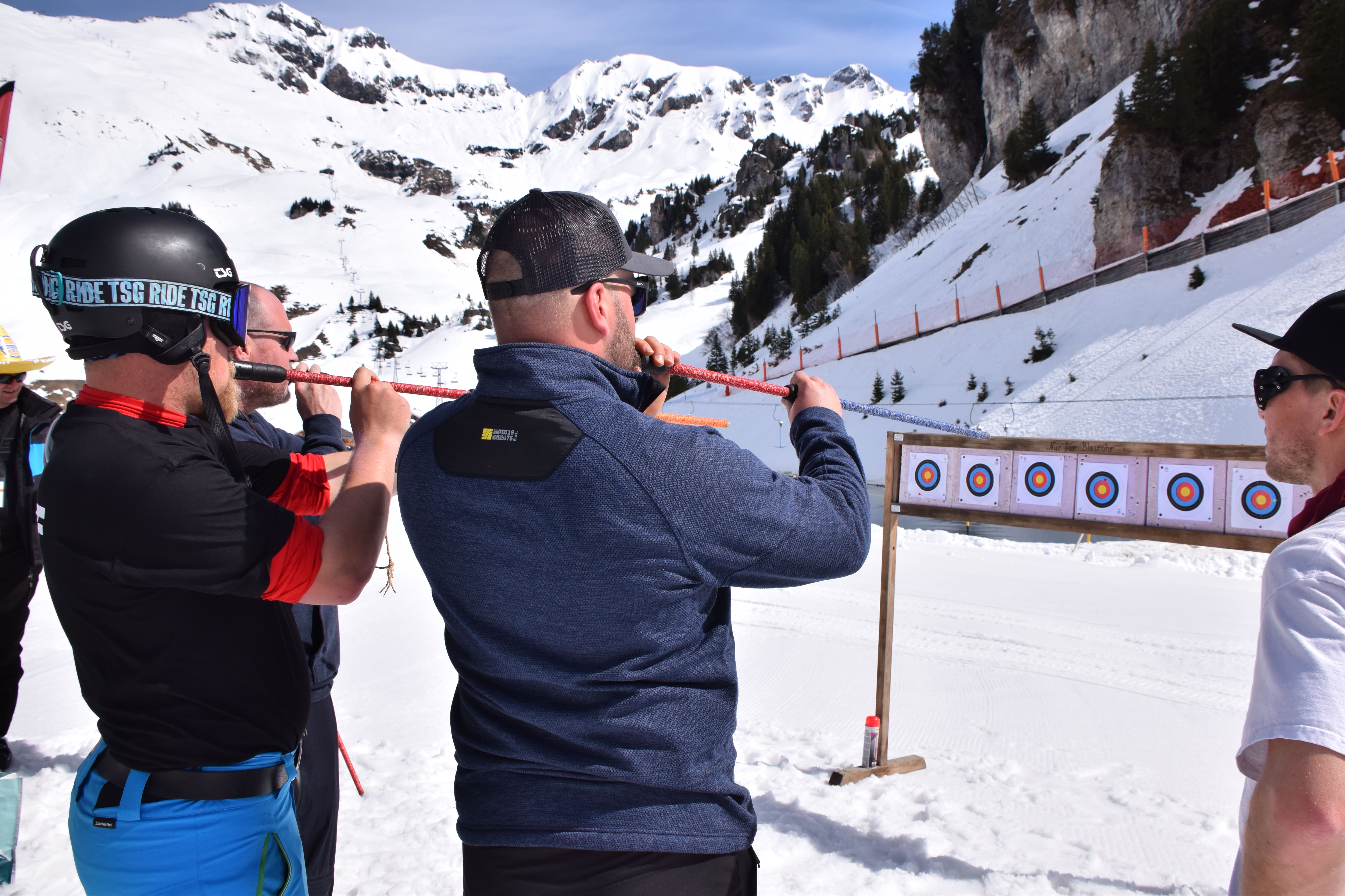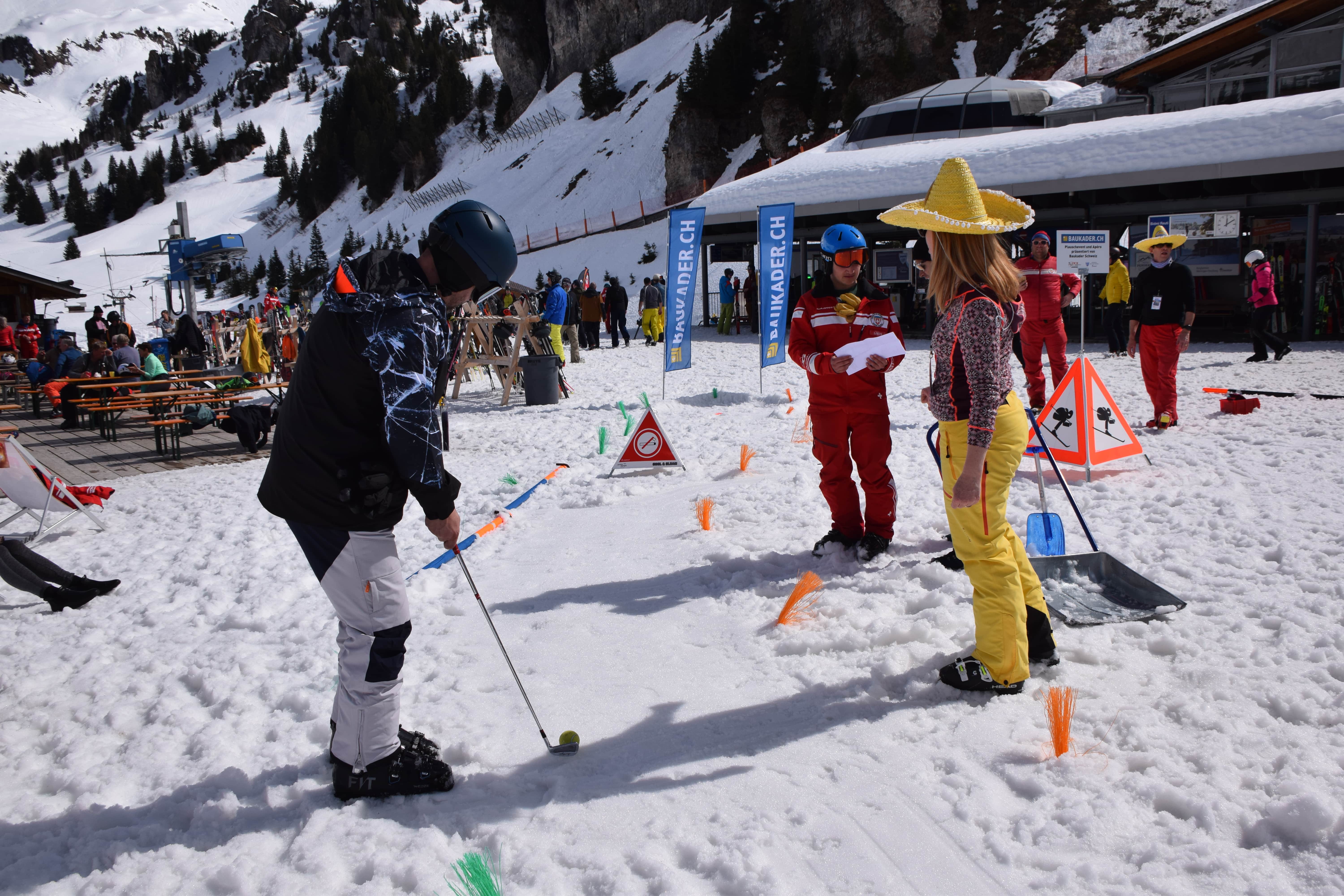 Nebst den BAUKADER Fahnen, die für den Verband Präsenz markierten, fielen die Vertreter von BAUKADER Schweiz auch mit den gelben Sombreros auf und kamen so mit zahlreichen Vertretern der Baubranche ins Gespräch. In 15 Teams waren die 200 Teilnehmer mit einem eigenen Skilehrer auf dem Hasliberg unterwegs und erkundeten das Skigebiet, bevor sie zwischen 11 und 14 Uhr zum Plausch-Spiel-Event eintrafen. Bei Schnee-Minigolf, Blasrohr-Schiessen und Cornhole-Werfen wurde viel gelacht, neue Bekanntschaften geschlossen und um den Gruppensieg gewetteifert.