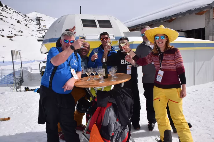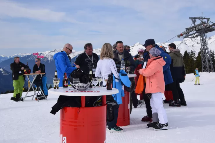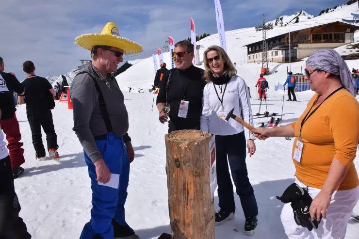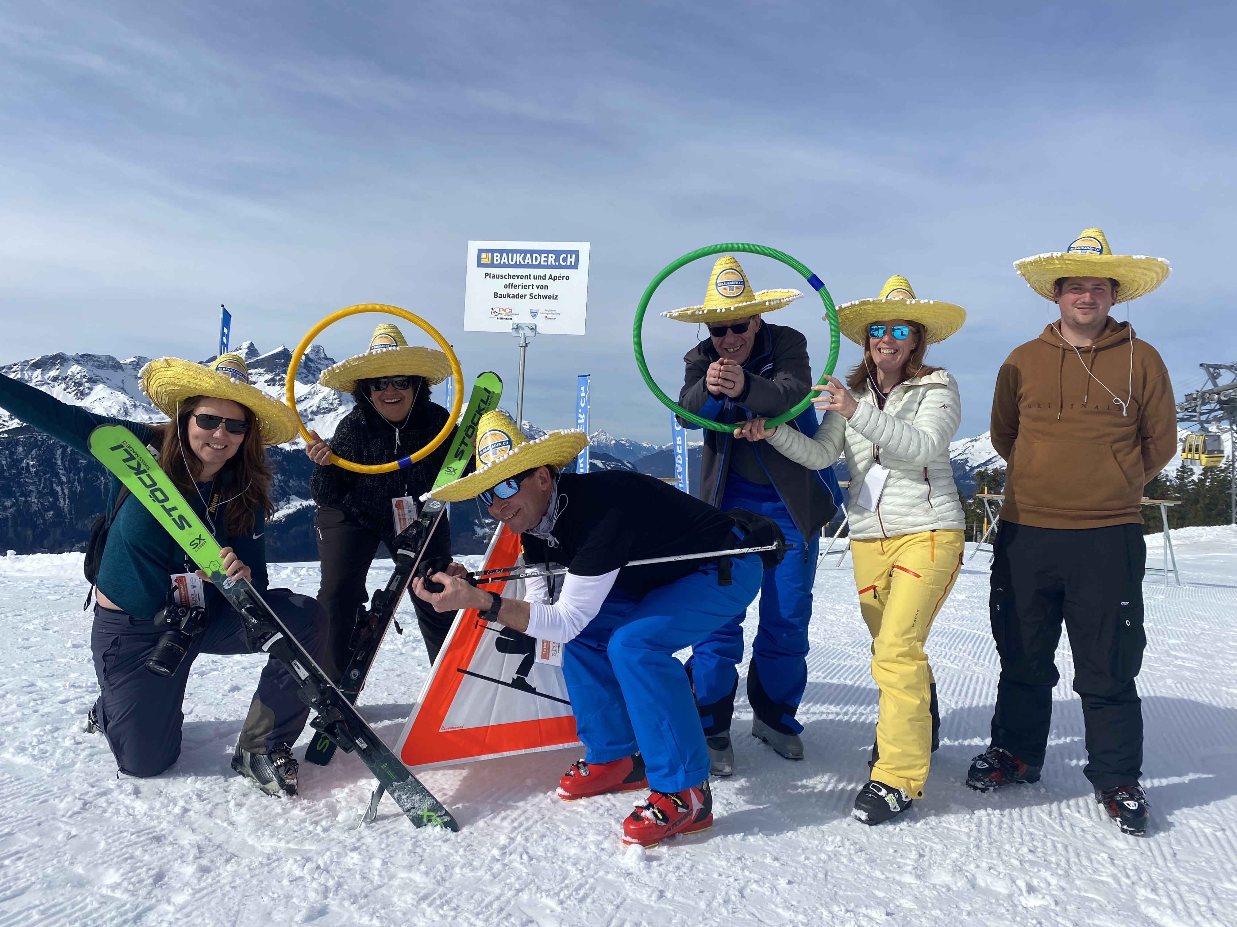 Wenn das Wetter gut ist, die Sonne scheint und Baukader Schweiz den Apéro sponsert, dann ist gute Stimmung garantiert am PCI-Skitag vom 17. März 2023 Text und Fotos: Anita Bucher Die 160 Teilnehmer waren jedenfalls bester Laune an diesem 17. März auf dem Hasliberg und genossen Sonne, Schnee und gute Kollegialität in vollen Zügen. Baukader Schweiz war «Presenting Sponsor» des Plauschevents beim Apéro. Bei Weisswein, Bier und Orangensaft gelangen gute Gespräche mit den Vertretern von Baukader Schweiz und daneben wurden beim Seilziehen, beim gemeinsamen Nageln, Blasrohr schiessen, oder Fussballtor treffen noch die Kräfte der jeweiligen Gruppen gemessen. Zu gewinnen gab es einen feinen Naturalpreis, bestehend aus Käse und Wurst. Besonders beliebt an diesem sonnigen Tag war die Baukader Sonnencrème.